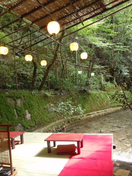 鞍馬山を降りると、貴船神社につきます。お腹がすいたので、川床料理を頂くことになりました。