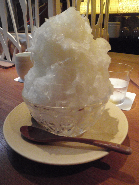 丁寧に削ったかき氷。季節の洋梨のシロップをかけて頂きます。