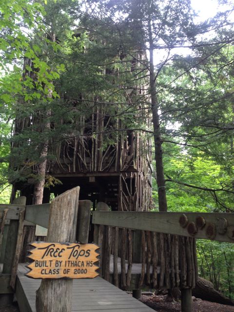 こちらは、cayuga nature center にあるツリーハウスで、2000年に卒業した地元の高校生達が作ったものです。下には美しい川が流れていて、子供達は大喜びでこの木の家で遊ぶ事が出来ます。その他、芝生の広場や、キツネ等の動物達が沢山います。