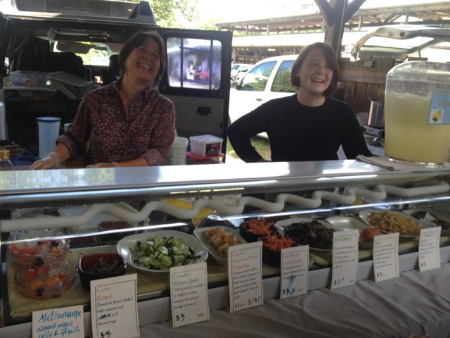 こ のマーケットでは様々な国のフードトラックがあります。なんと日本食を発見!80代の日本人のおばあさまが全部作っているそうです。そして、売っているの は娘さんとそのお孫さん。私の娘は日本語で彼女達に話しかけましたが、日本語は私話せないのって言っていました。とっても笑顔が素敵な親子ですね!
